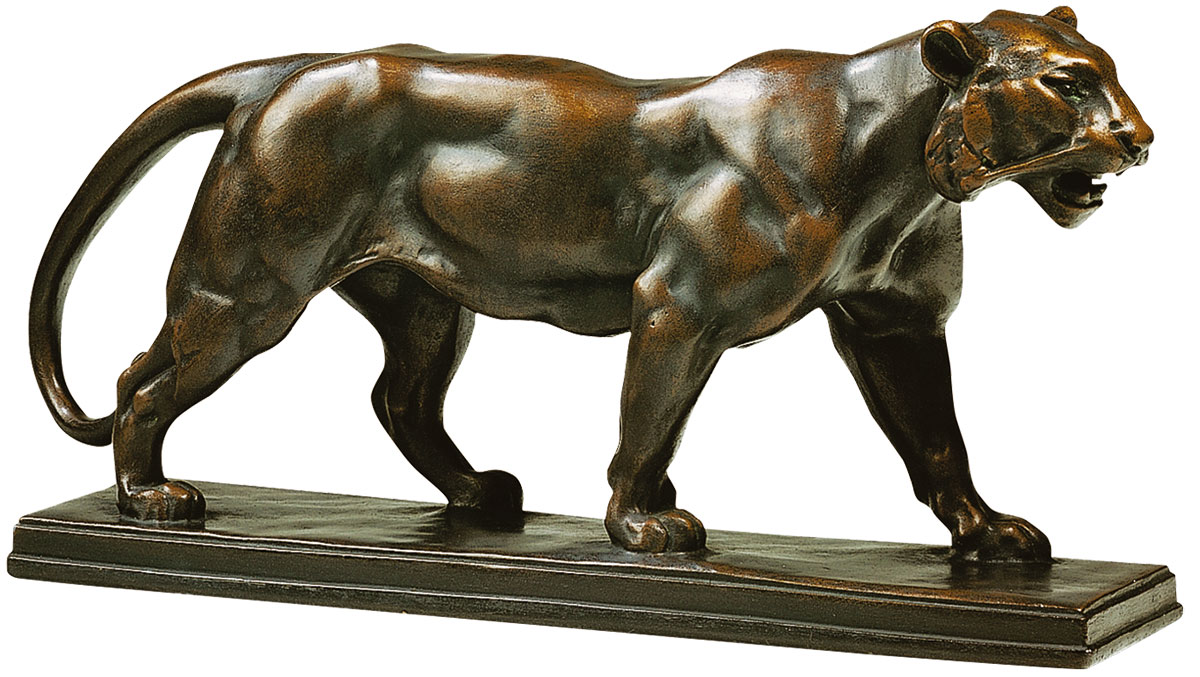 In dieser großartigen Tierplastik sind Gelassenheit und Dramatik spannungsvoll vereint: Die jagende Raubkatze mit den reflektierenden, angespannten Muskeln und Sehnen beeindruckt durch die Gewalt des Ausdrucks und die Energie der Bewegung. Original: Musée du Louvre, Paris. ars mundi Museums-Replikat, von Hand gegossen und patiniert. Edition in Bronze, gegossen im Wachsausschmelzverfahren. Länge 39 cm. Höhe 21 cm.