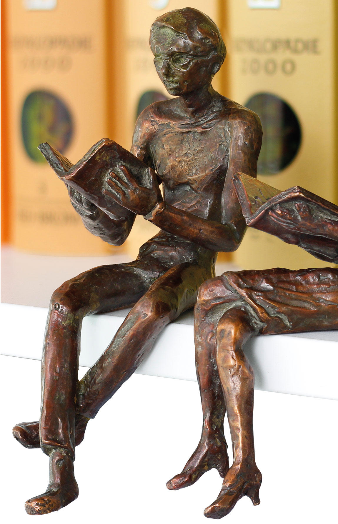 Produktinformationen "Birgit Stauch: Skulptur / Kantenhocker 'Buchleser', Metallguss"
