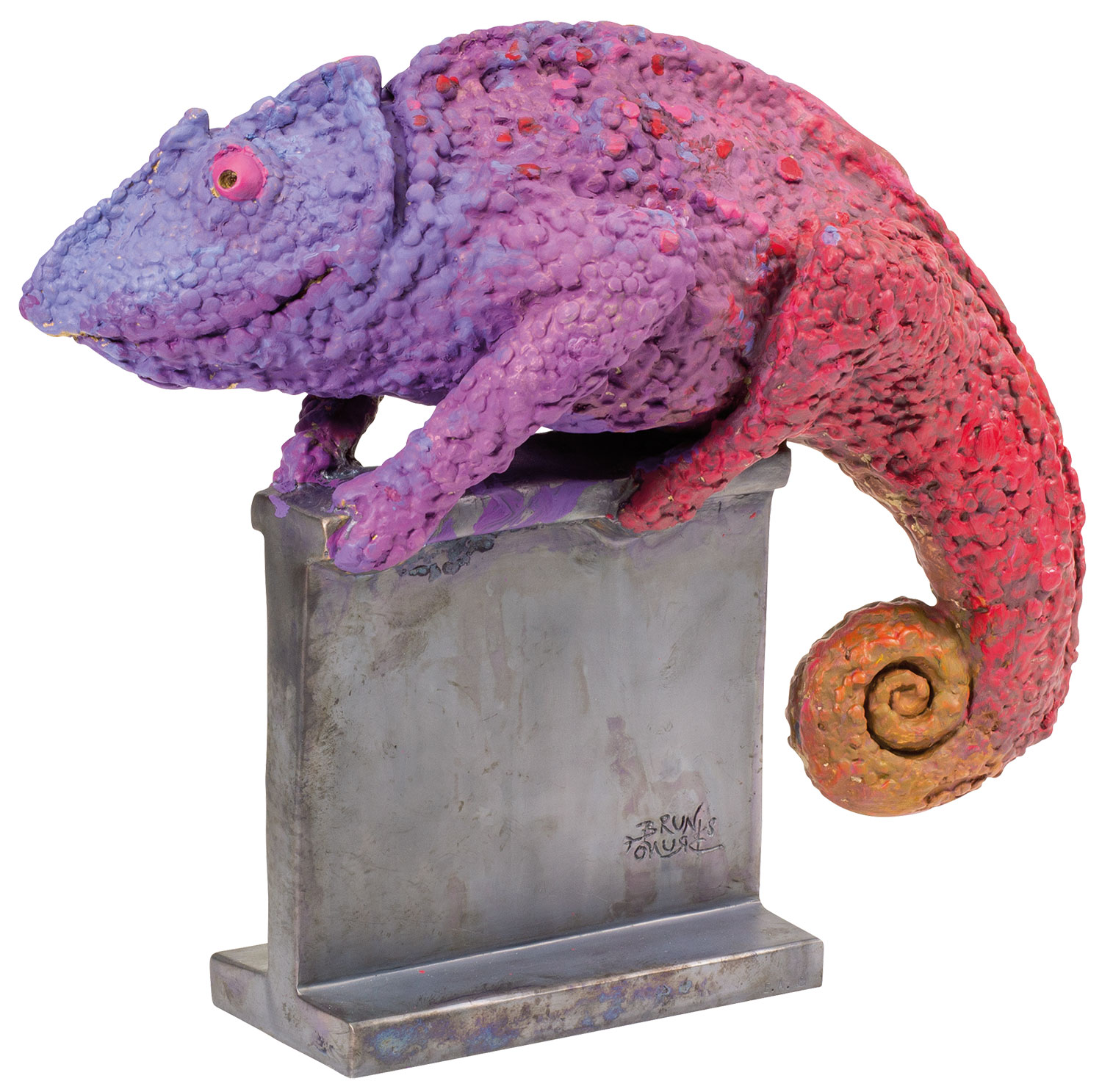 Produktinformationen "Bruno Bruni: Skulptur 'Chamäleon Lila-Rosa', Bronze handbemalt"