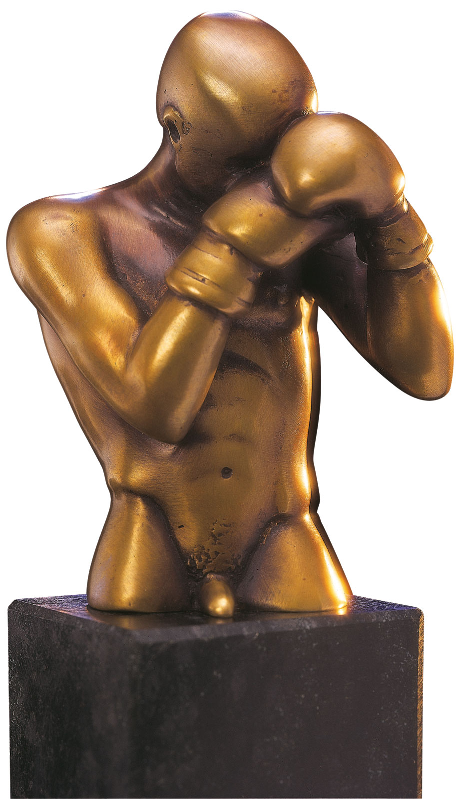 Bruno Bruni ist ein großer Freund des Boxsports. Mit dieser Skulptur schuf er eine Hommage an die Dynamik, Kraft und Konzentration der Sportler. Feine Bronze, patiniert, auf einem Sockel aus Diabas. Von Hand gegossen im Wachsausschmelzverfahren. Limitierte Auflage 480 Exemplare, nummeriert und signiert. Höhe mit Sockel 19 cm. Gewicht 1,8 kg.