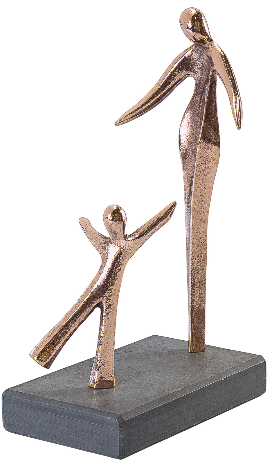 De første skridt - succes gennem sikkerhed. Skulptur af bronze med poleret overflade og base. Størrelse 19 x 12 x 7 cm (h/b/d).