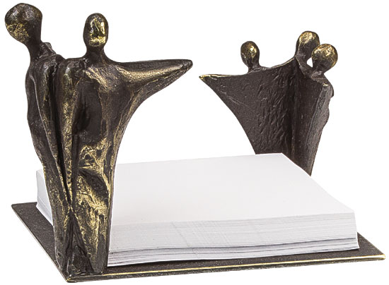 Slip box for notes, telephone numbers, flashes of inspiration and appointments. Cast metal with bronzed surface. A special highlight for any desk. Supplied without notes. Format 9.5 x 11 x 11 cm (H/W/D), for paper format 9 x 9 cm. Weight approx. 0.7 kg.