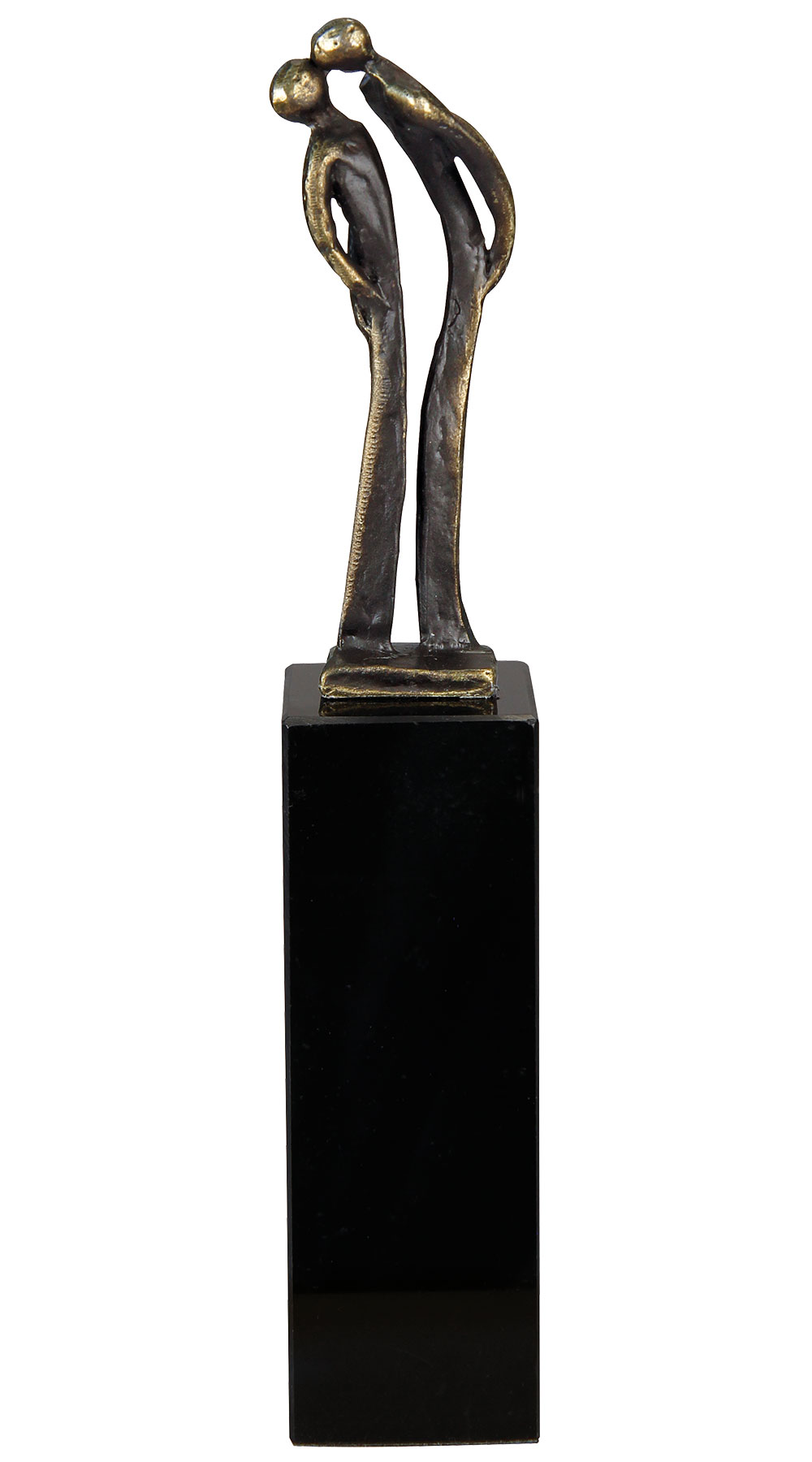 Probably the most beautiful approach - the kiss. Cast metal with bronzed surface on a black marble base. Size 23 x 4 x 4 cm (H/W/D). Weight approx. 0.6 kg.