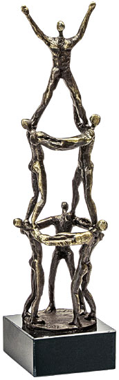 A strong group: together we can achieve what a single person can never do. Cast metal with bronzed surface on a black marble base. Size 26 x 6.5 x 6.5 cm (H/W/D). Weight approx. 0.7 kg.