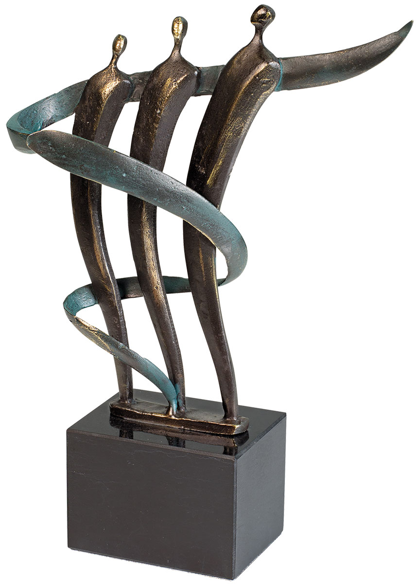 Boldly united trio. Cast metal on a marble base. Format 21.5 x 15.5 x 5 cm (h/w/d).