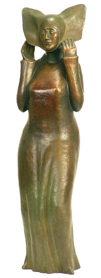 A mystical figure, the fairy-tale creature, an apparition - descended from the niche of the cathedral - the narrative figure of the Middle Ages, which puzzles the viewer in its interpretation and whose message the artist leaves to us. Bronze sculpture, height: 59 cm. Edition: 24 copies, numbered and signed.