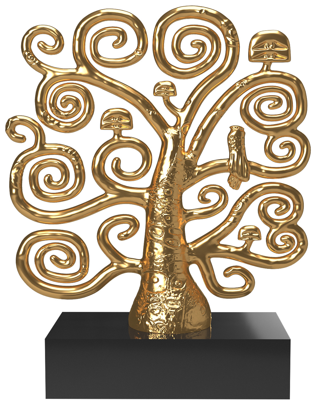 The spiral branches of the tree of life are the central motif in the famous wall frieze in the Palais Stoclet in Brussels. Gustav Klimt designed the Art Nouveau ensemble from 1905-1911. Sculptor's model based on the Stoclet frieze. Cast metal, decorated in gold colour with shading in the patina, on a stone base. Limited edition of 499 pieces. Size incl. plinth 20 x 16 x 6 cm (h/w/d). Weight approx. 1.5 kg.