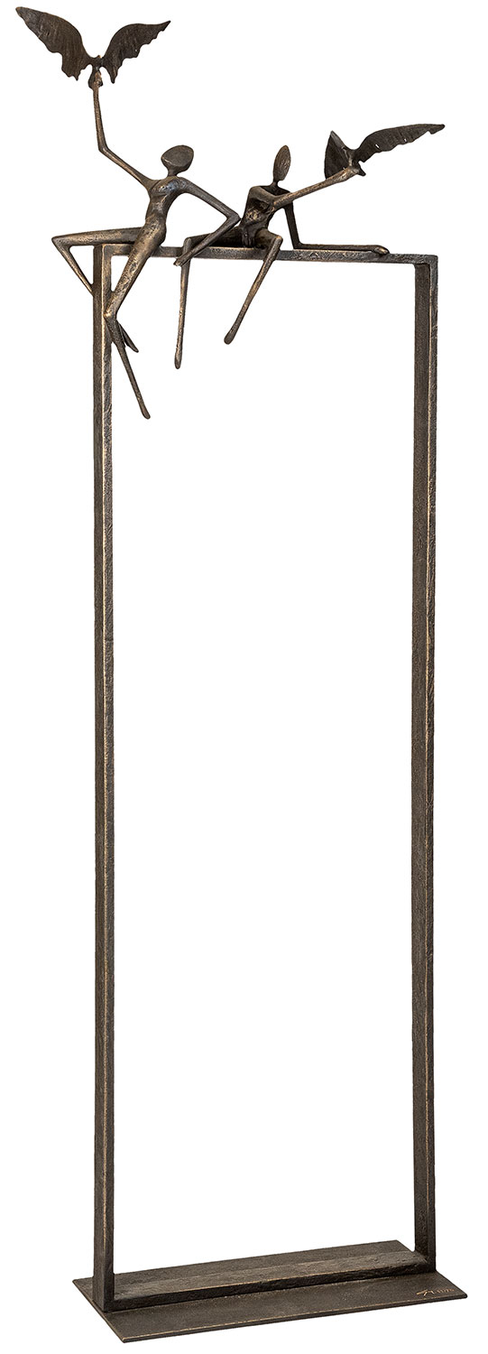 The 'Love Birds' sculpture is a charming portrait of a couple celebrating the freedom of life, enjoying each other's company and nature. It creates a positive atmosphere and becomes the centrepiece of any interior.sculpture in fine bronze, patinated, cast by hand using the lost wax technique. Limited edition of 75 pieces, numbered and signed, with certificate. Format 145.5 x 30 x 47 cm (h/w/d). Weight approx. 21 kg.