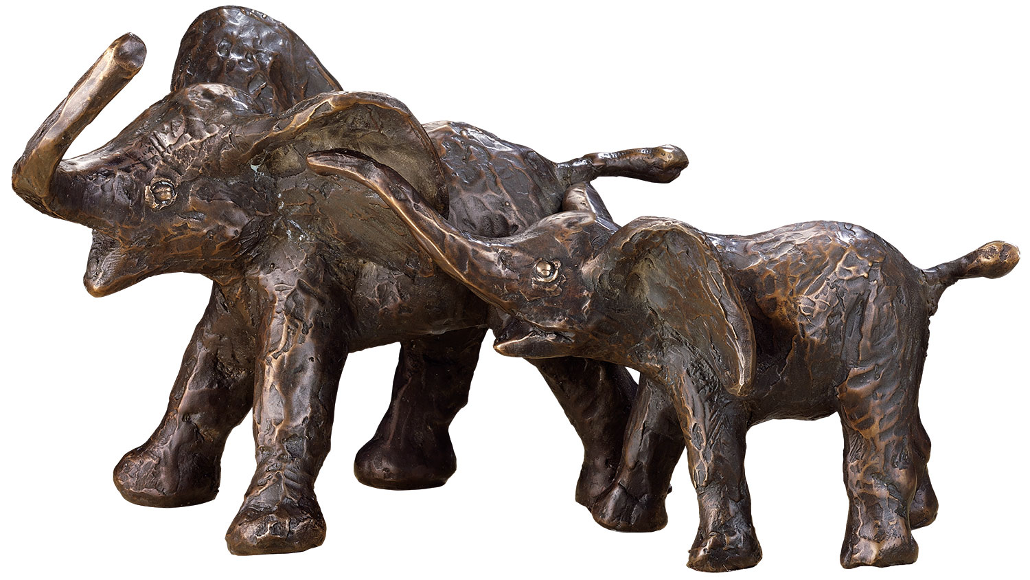 In their tender togetherness, elephants are not only a symbol and guardian of domestic happiness, but also symbolise partnership and loyalty. With their strength and vigour, they protect everyone who is close to them: Because an elephant places great value on love, family and friendship. Exclusively at ars mundi: sculpture group in fine bronze, cast by hand using the lost wax technique, patinated and polished by hand. Limited world edition of 199 pieces, numbered and signed. Size 22 x 12 x 11.5 cm (W/H/D), weight 3 kg.