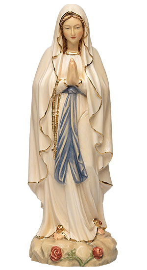 Every year, more than 2 million people make a pilgrimage to Lourdes in south-west France, drawn by the story of 14-year-old Bernadette Soubirous, to whom the Madonna appeared in 1858 and who witnessed the birth of the holy spring. The statue of the Madonna from the early 20th century forms the centre of the pilgrimage site. Woodcarving artists from Val Gardena carved the Madonna with roses at her feet by hand from maple wood, painted and partially gilded. Height 29 cm.