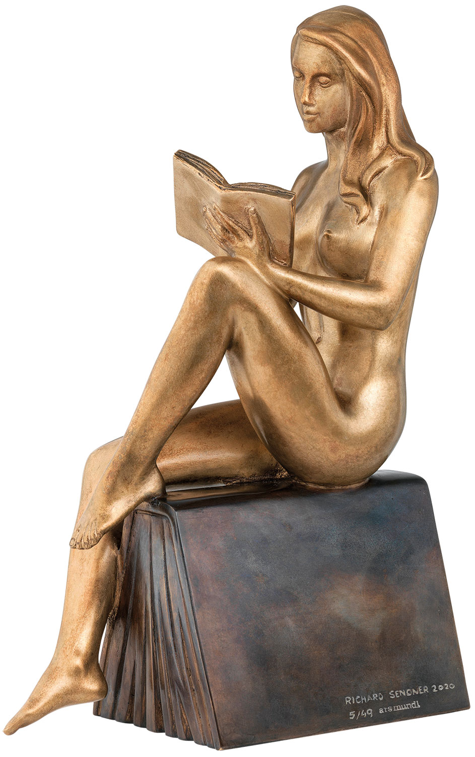Finding relaxation with a good book - Richard Senoner recreates this moment with his sensual depiction of the 'reader'. His nude sculpture of a young woman is also a homage to literature and reading. The colour contrast of the patination of the figure and the base in the form of an open book supports the vibrancy and expression of the sculpture. The design of the proportions reflects Senoner's many years of experience with nude sculptures, in which he has found one of his central subjects. He attaches great importance to detailed and precise elaboration, lending his works harmony and aesthetics. Sculpture in bronze, cast using the lost wax technique, chiselled, polished and patinated by hand. Moulded directly from the original. Limited edition of 49 pieces, numbered, signed and hallmarked with the foundry stamp. With numbered certificate of authenticity and limitation certificate. Size 31 x 11 x 20 cm (h/w/d). Weight approx. 6.2 kg. ars mundi exclusive edition.