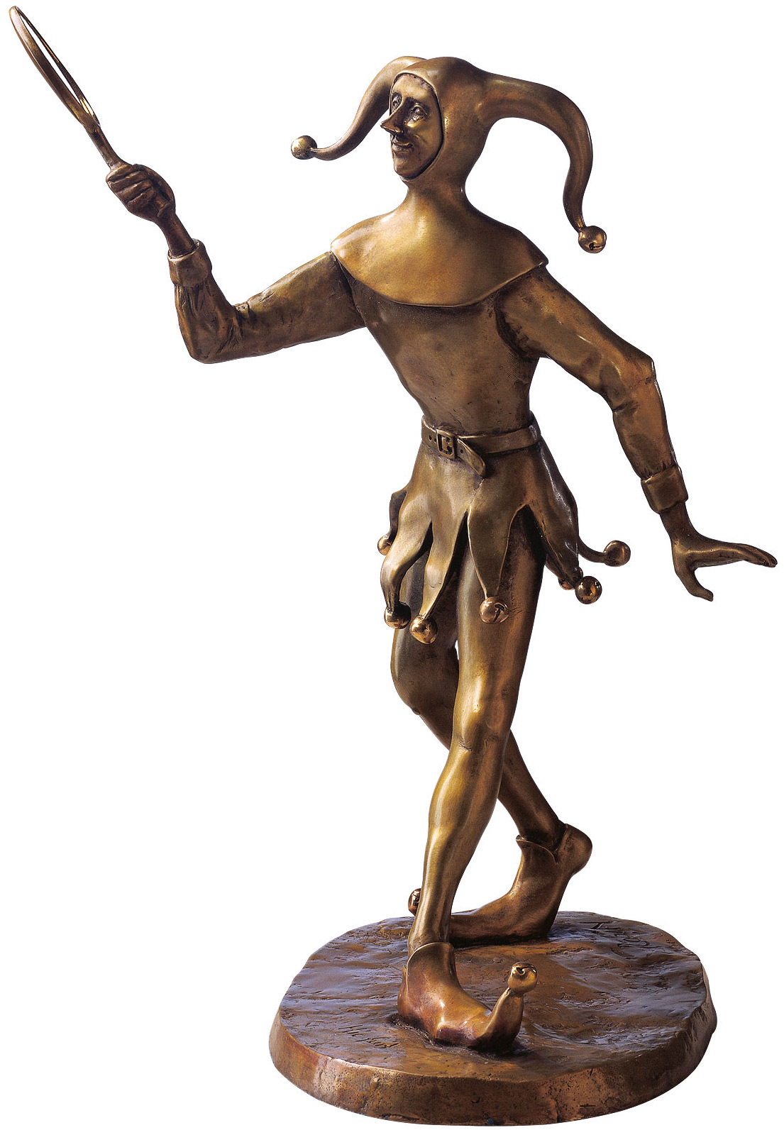 The truth lies in laughter! RobiN shows Eulenspiegel holding up a mirror to the times in a skilful and quick-witted manner. The model for numerous poems, from Hans Sachs to Gerhart Hauptmann, was a vagabond from Brunswick who put on his jester's cap to expose the limited ideas of his fellow human beings with numerous pranks. The unattached outsider took pleasure in duping all know-it-alls and parodying their language. His gravestone is in Mölln in Holstein, but he is as alive as ever: his name entered the German language with the word 'Eulenspiegeleien' and became a generic term in the Romance-speaking world: in French, Schalk means 'espiègle'. ars mundi exclusive edition as a bronze sculpture from the 'Märchen - Mythen - Sagen' series. Cast by hand using the lost wax technique. Limited edition of 99 pieces, numbered and signed. Height 38 cm.