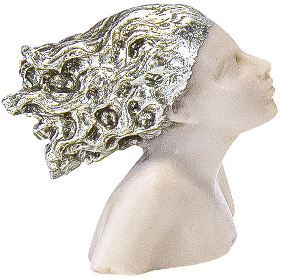It was the visionary art of the Renaissance that inspired sculptor Roman Johann Strobl to create this small bust of a girl during a stay in Tuscany. Stone mould, cast by hand. Hair silver-plated with hammered metal. Signed. Size 7 x 7.5 x 8 cm (h/w/d). ars mundi exclusive edition.