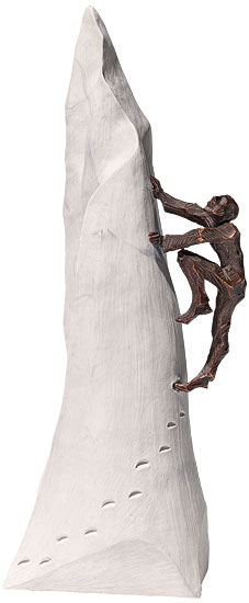 The ascent can be followed step by step. The top is within reach. The actor and projection surface is the figure made of patinated bronze cast metal. On a light-coloured cast stone base. ars mundi exclusive edition. Signed. Size 13 x 33 x 11 cm (W/H/D). Weight approx. 2.2 kg.