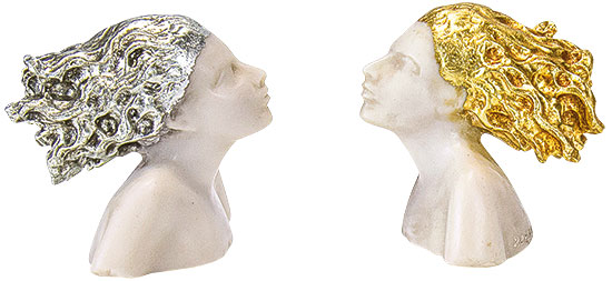 It was the visionary art of the Renaissance that inspired sculptor Roman Johann Strobl to create this small bust of a girl during a stay in Tuscany. Stone mould, cast by hand. Hair gilded or silver-plated with hammered metal. Signed. Each measuring 7 x 7.5 x 8 cm (h/w/d). ars mundi exclusive edition. Both sculptures in a set.
