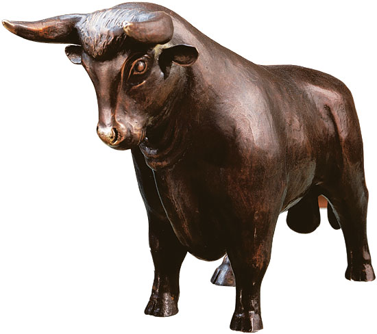 In the 16th century, the Spanish brought bullfighting to the New World. However, the Mexicans quickly changed the rules and sent the bull to a chained grizzly in the arena. The poet Don José de la Vega transferred this image to the events at the Amsterdam Stock Exchange in 1688. Since then, the bull and bear have been as much a part of the world of shares as the Dow Jones and Wall Street. Polymer art casting, cast by hand, with bronze patina. Limited edition of 299 pieces, numbered and signed. Size 30 x 20 x 11 cm (W/H/D). Weight approx. 3.2 kg.