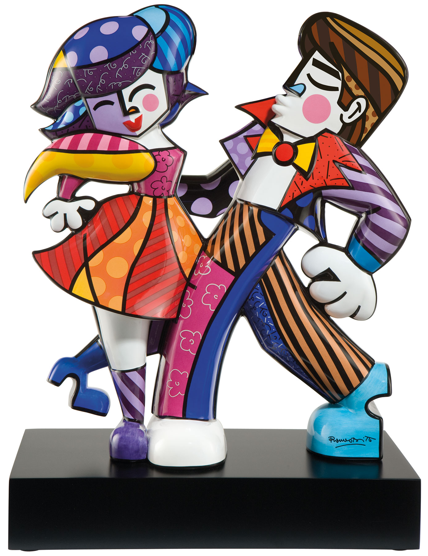 Romero Britto's couple exude pure joie de vivre and put on a hot performance on the dance floor. Porcelain figures, presented on a wooden plinth. Limited to 499 pieces. With certificate. Height 46 cm.