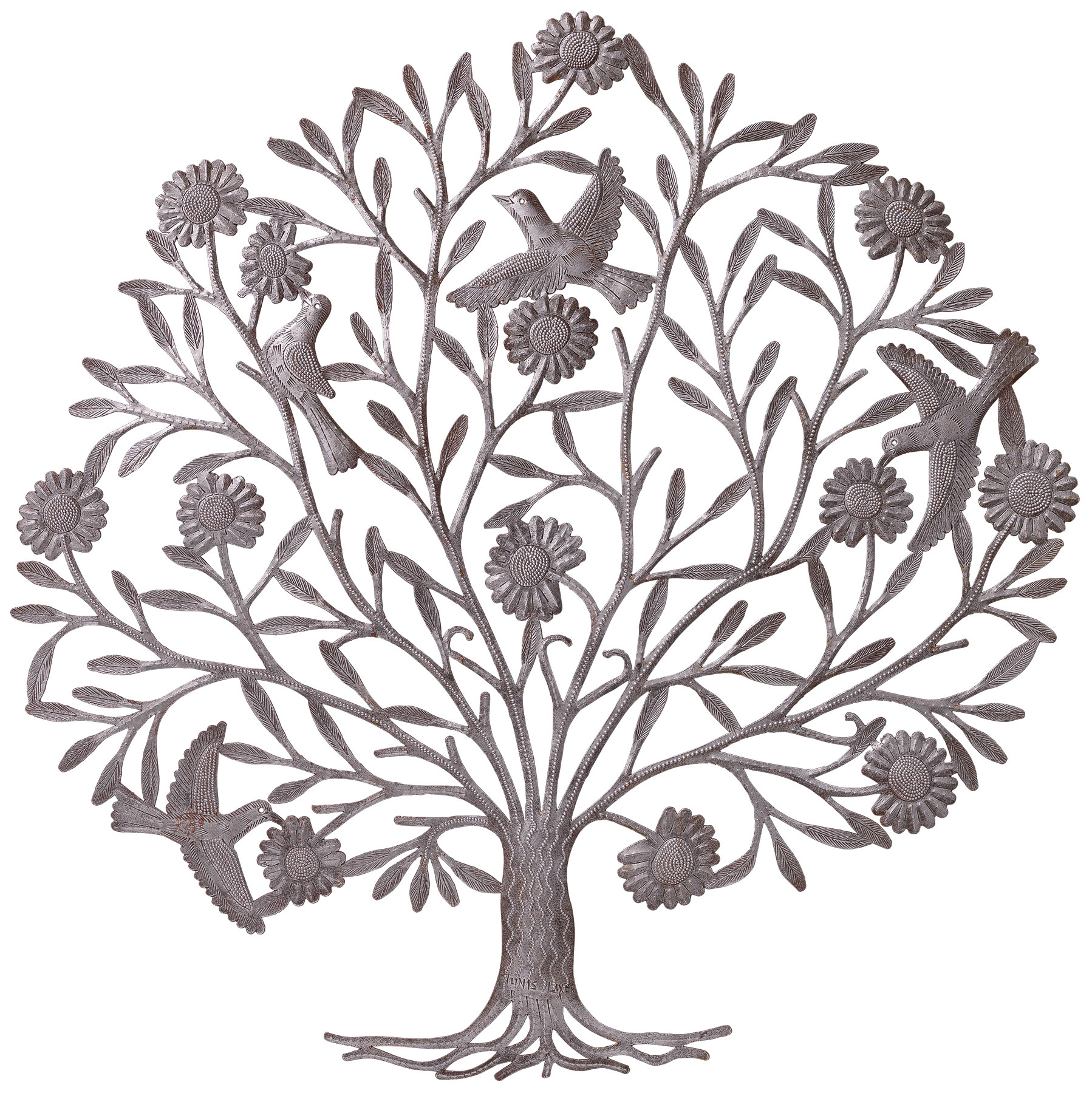 The tree as a symbol of nature as a whole in the Bosmétal style. This folk art was created in Haiti in the 1950s. Wall object made of iron. Diameter approx. 55 cm. Weight 2 kg.