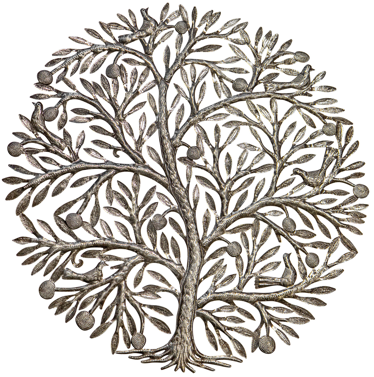 Leaves, birds, fruit - this tree is a small universe. Bosmétal art originates from Haiti. It has been popular art there since the 1950s. The themes are often borrowed from mythology and depicted in a naive style. Diameter approx. 85 cm. Weight 2 kg.