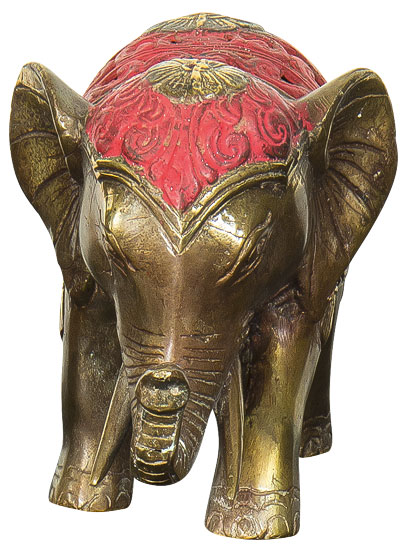 Bronze elephant cast by hand, patinated and partially painted. Each piece is unique - variations in size, shape and colour nuances are a sign of the quality of the craftsmanship. Size 11 x 11 x 17 cm (h/w/d). Red version.