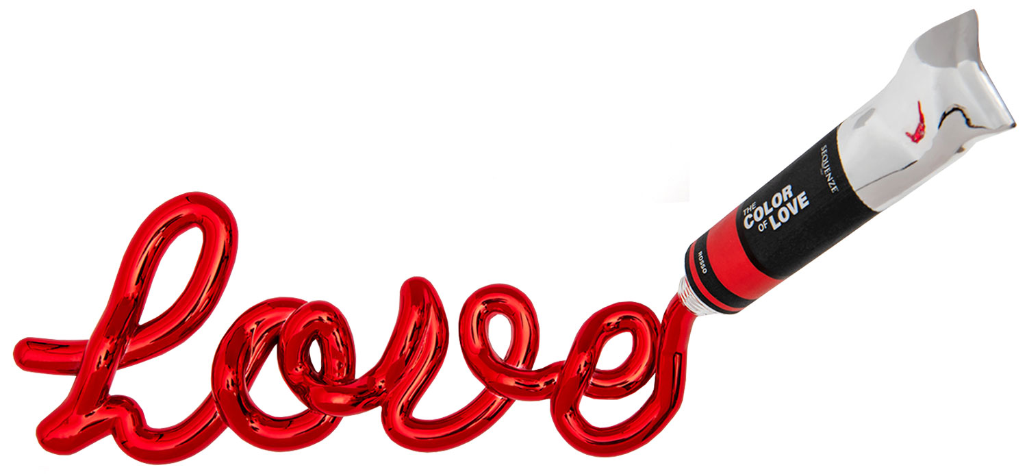 Colour in your feelings! 'Love' celebrates the diversity and beauty of love. Each inscription consists of a colour that symbolises the wide range of shades and dimensions that love can take on. The artwork invites us to reflect on the uniqueness of each form of love, which manifests itself in different tones and intensities, and celebrates the acceptance, understanding and appreciation of the different expressions of love that enrich our world.resin sculpture. Enamelled. Numbered edition, stamped by the artist. With certificate. Size 12 x 30 x 7 cm (H/W/D). Weight approx. 1 kg. Red version.