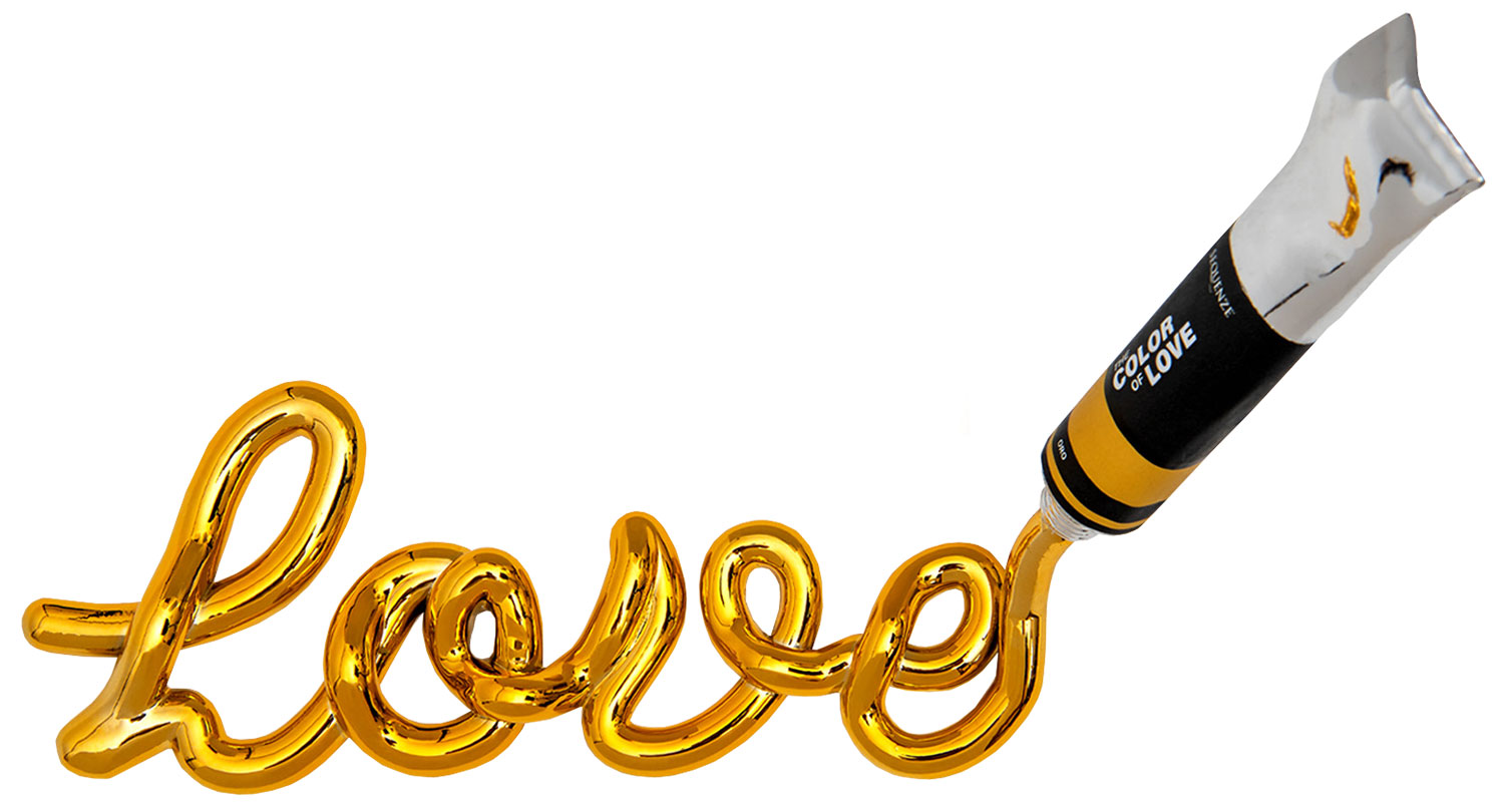 Colour in your feelings! 'Love' celebrates the diversity and beauty of love. Each inscription consists of a colour that symbolises the wide range of shades and dimensions that love can take on. The artwork invites us to reflect on the uniqueness of each form of love, which manifests itself in different tones and intensities, and celebrates the acceptance, understanding and appreciation of the different expressions of love that enrich our world.resin sculpture. Enamelled. Numbered edition, stamped by the artist. With certificate. Size 12 x 30 x 7 cm (H/W/D). Weight approx. 1 kg. Gold-coloured version.