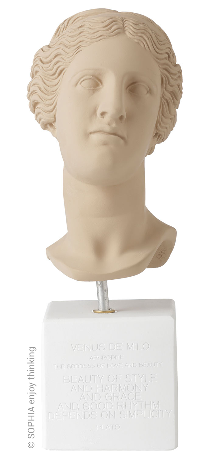 The Venus de Milo is an icon of antiquity as the goddess of love and beauty. As this object was made by hand, slight variations are a sign of quality. Made of ceramine (ceramic-like material). Format 40 x 12.5 x 17.5 (H/W/D). © SOPHIA enjoy thinking.