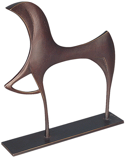 In a delicate arrangement, the artist brings out the soul of the horse in a graceful silhouette: it stands still and motionless, yet the dancing curves reveal its graceful agility and strength. Sculpture in bronze, cast using the lost wax technique, chiselled and patinated by hand. Limited edition of 24 pieces, numbered and signed. Size 27 x 25 x 5 cm (H/W/D). Weight approx. 2 kg.