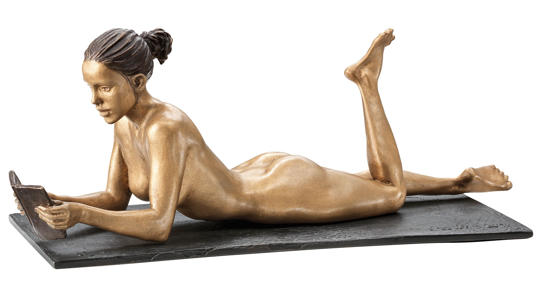 Un moment de calme et de détente : la 'Liseuse' de Leo Wirth. Le sculpteur Leo Wirth trouve son inspiration dans le quotidien des gens, mais ajoute toujours à ses sculptures ses propres interprétations. Pour la forme, il se réfère de manière reconnaissable aux proportions naturelles de l'être humain et attache une grande importance à l'élaboration des contours de manière figurative. Dans la sculpture 'Liseuse', Wirth s'oriente également vers la beauté réelle du corps féminin. Elle montre une jeune femme concentrée sur la lecture d'un livre et devient ainsi un symbole de calme et de détente. Sculpture en bronze fin. Coulé à la main selon le procédé de la cire perdue et patiné. Edition limitée à 99 exemplaires, numérotés et signés. Format 11,5 x 30 x 10,7 cm (h/l/p) sur plaque de base en bronze de 0,4 x 25,8 x 10,7 cm (h/l/p). Poids 3,5 kg. Édition exclusive ars mundi.