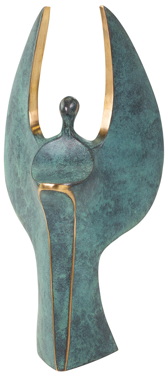 Avec ses ailes aux courbes dynamiques, cet ange expressif rayonne d'une confiance qui lui est propre. Les arêtes polies brillantes mettent l'accent. Fabriqué en bronze coulé au sable, patiné et poli à la main. Format 24 x 12 x 11 cm (h/l/p). Poids 2,7 kg.