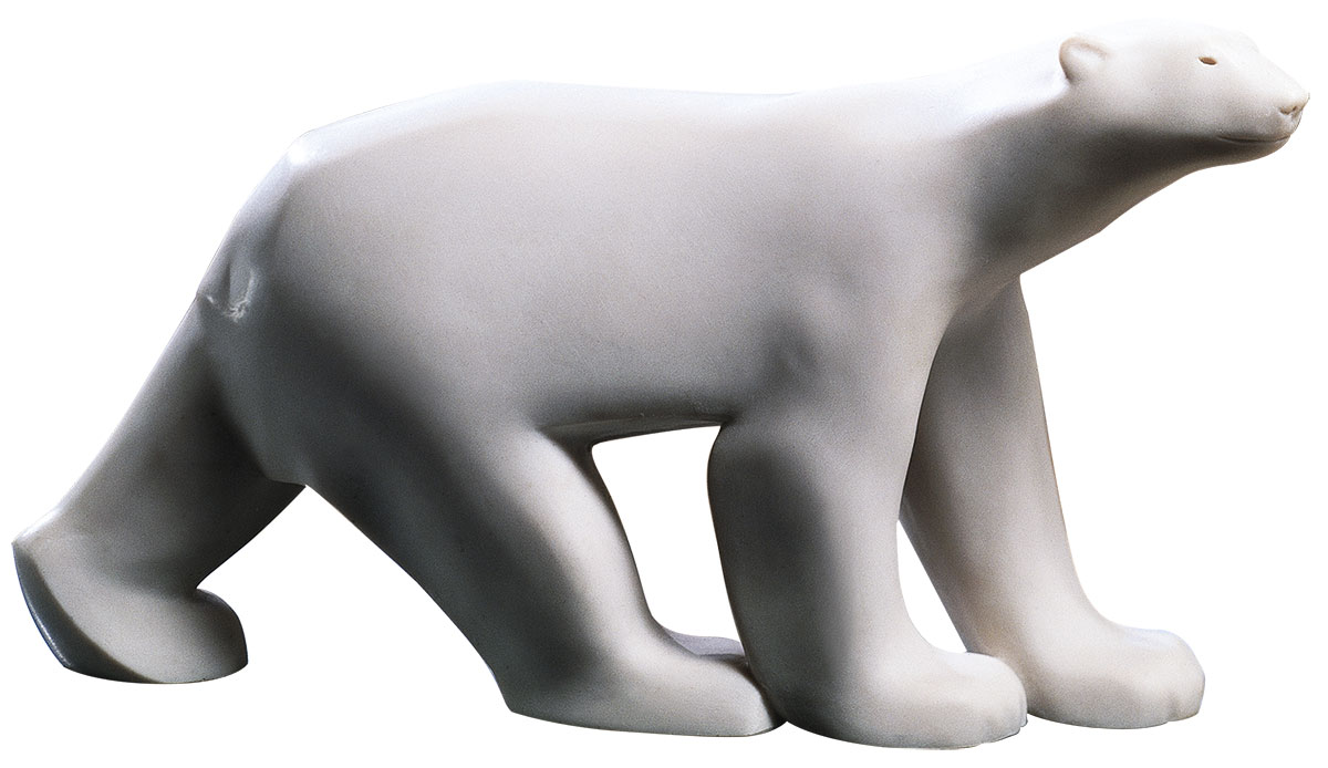 François Pompon trug 15 Jahre lang wesentlich zum Ruhm des Bildhauerstudios von Auguste Rodin bei. Er entwickelte seinen eigenen unverwechselbaren Stil und schuf mit seinem Polarbären den unübertroffenen Prototyp einer Tierskulptur, die gleichzeitig Kraft und Moderne ausstrahlt. Das Metropolitan Museum of Art stellt den Polarbären als Meilenstein der modernen Bildhauerei ins Zentrum seiner Sammlung. Original: Marmor, 1923-1933, unter anderem Musée des Beaux-Arts, Dijon und Museum of Modern Art, New York City. Museums-Replikat in polymer gebundenem Marmor. Für höchste Authentizität werden die Details von Hand herausgearbeitet. Format 45 x 24 x 10 cm (B/H/T).