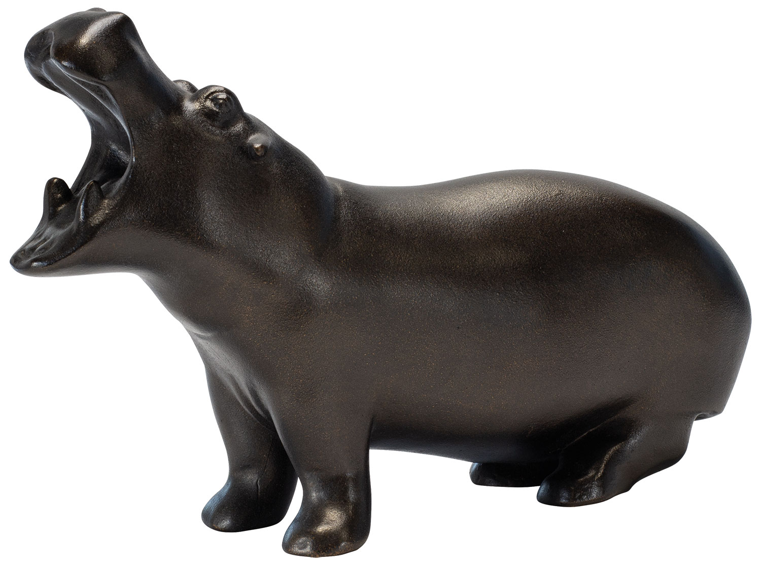 Es ist dem langjährigen Studium der Flusspferde des Pariser Jardin des Plantes zu verdanken, dass es François Pompon (1855-1933) gelungen ist, das Wesen dieses Tieres einzufangen. Pompons bronzene Tierskulpturen gehören mit ihrer glatten Oberfläche und Schlichtheit zu den bekanntesten Werken des französischen Bildhauers.Original: Bronze, 19. Jahrhundert, Musée d'Orsay, Paris.Replikat aus handpatiniertem Resin. Mit Authentizitätszertifikat. Format 14 x 7 x 22,5 cm (H/B/T). Gewicht ca. 1,2 kg.