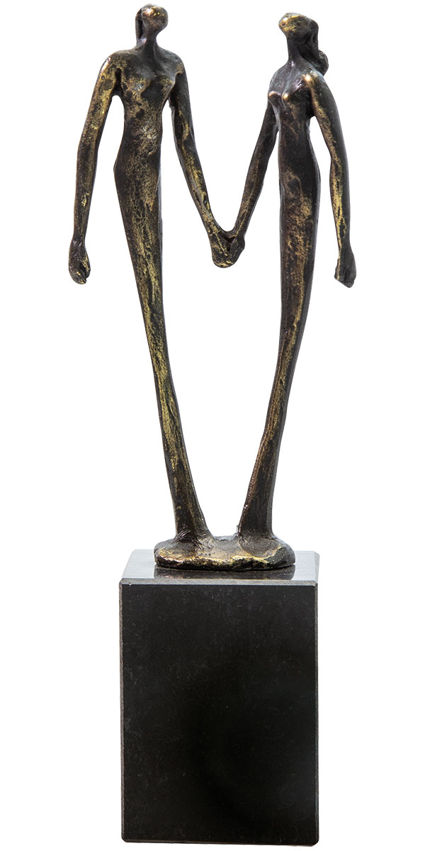 Freundschaft verbindet. Metallguss mit bronzierter Oberfläche auf schwarzem Marmorsockel. Format 20,5 x 7 x 5 cm (H/B/T). Gewicht ca. 0,5 kg.
