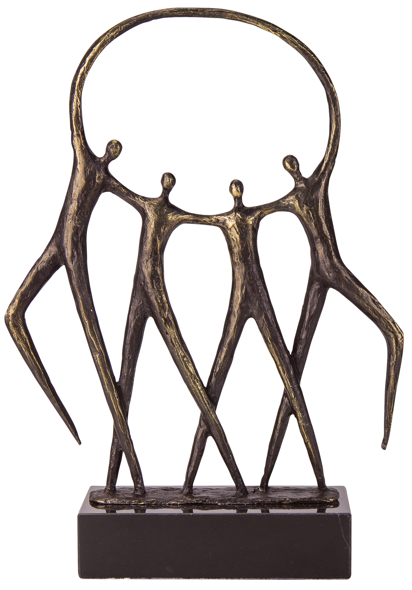 Im Kreis von guten Freunden. Metallguss mit bronzierter Oberfläche auf schwarzem Marmorsockel. Format 25 x 19 x 6 cm (H/B/T). Gewicht ca. 1,2 kg.