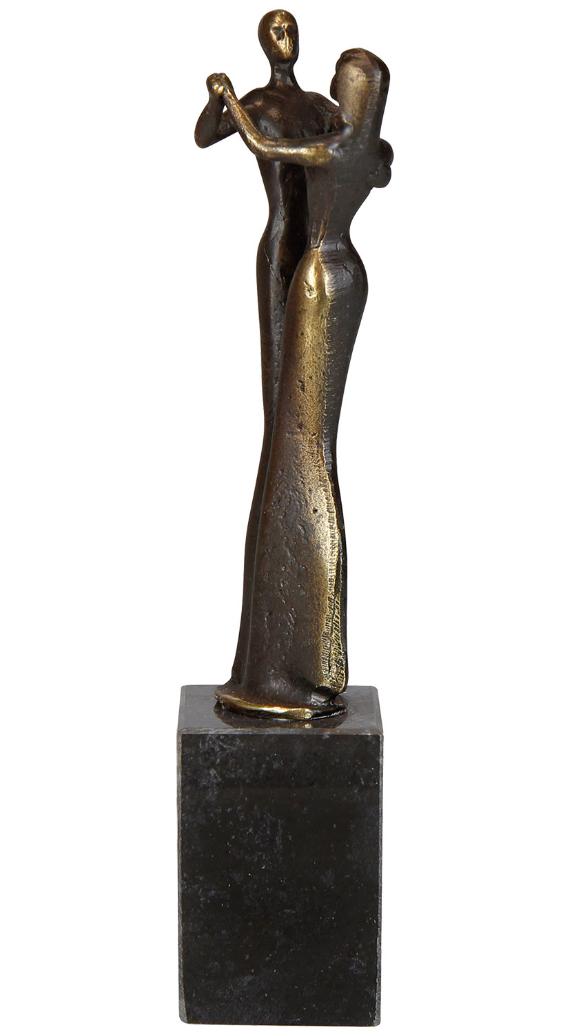 Der Paartanz - eine der innigsten Formen der Zuneigung zueinander. Metallguss mit bronzierter Oberfläche auf schwarzem Marmorsockel. Format 19 x 4 x 4 cm (H/B/T). Gewicht ca. 0,5 kg.
