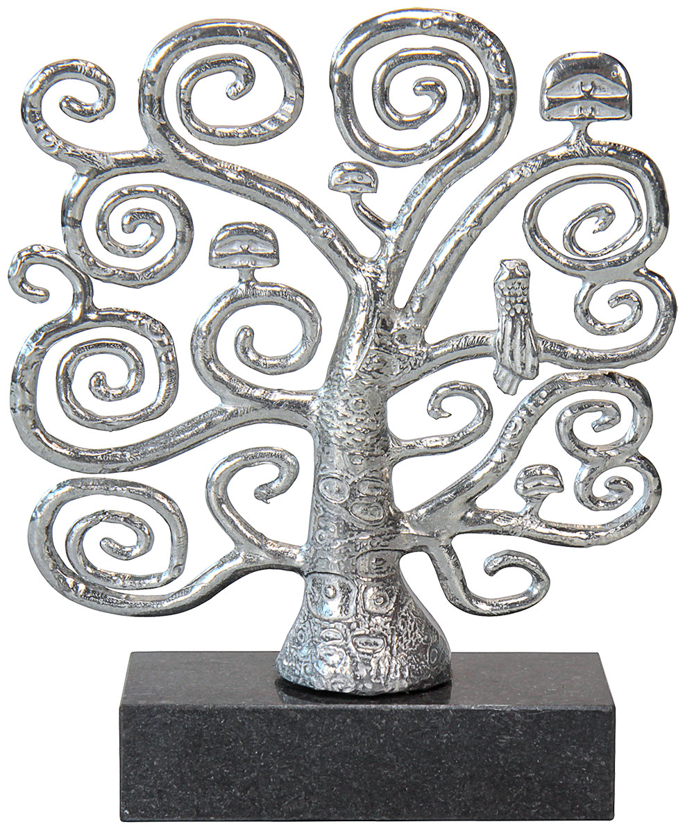 Die spiralförmigen Äste des Lebensbaumes sind das zentrale Motiv im berühmten Wandfries im Palais Stoclet in Brüssel. Gustav Klimt gestaltete das Jugendstil-Ensemble von 1905-1911. Bildhauermodell nach dem Stoclet-Fries. Metallguss, silberfarben dekoriert, auf Steinsockel. Limitierte Auflage 499 Exemplare. Format inkl. Sockel 20 x 16 x 6 cm (H/B/T). Gewicht ca. 1,5 kg.