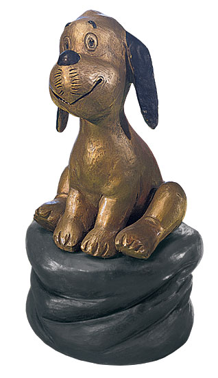 Kein Preis ohne Fleiß: Unermüdlich rief Wum in jeder Quizsendung nach seinem Herrn und Meister. Sein langgezogenes 'Tooooelke' wurde zum heimlichen Wahrzeichen einer der beliebtesten Ratesendungen im deutschen Fernsehen mit dem Titel 'Der große Preis'. Große TV-Preise, wie den Adolf-Grimme-Preis in Silber erhielt auch Loriot. Das für Wum komponierte Lied 'Ich wünsch' mir 'ne kleine Miezekatze' wurde 1,3 Millionen mal verkauft und brachte Loriot eine goldene Schallplatte... Exklusiv bei ars mundi ist Loriots Wum in zwei Editionen erhältlich: in feiner Bronze oder in polymerer Steinmasse in Loriots originaler Farbgebung. Keck trohnt er auf seinem Kissen, als wär's ein Siegerpodest: 'The winner is...' Edition in Bronze. Gegossen im Wachsausschmelzverfahren. Poliert und von Hand bemalt sowie fein patiniert. Limitierte Auflage 499 Exemplare. Kissen aus einer polymeren Steinmasse. Jede Skulptur wird in 2 Teilen geliefert. Format 15 x 29,5 x 16 cm (B/H/T).