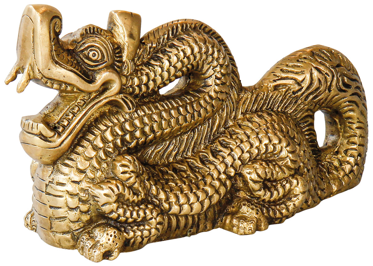 Drachen sind Wächter zwischen den Dimensionen. Ohne sie ist kein Einlass möglich. Sie beschützen Haus und Hof und verjagen böse Geister. Aus Messing. Format 12 x 21 x 8 cm (H/B/T). Gewicht ca. 1,75 kg.