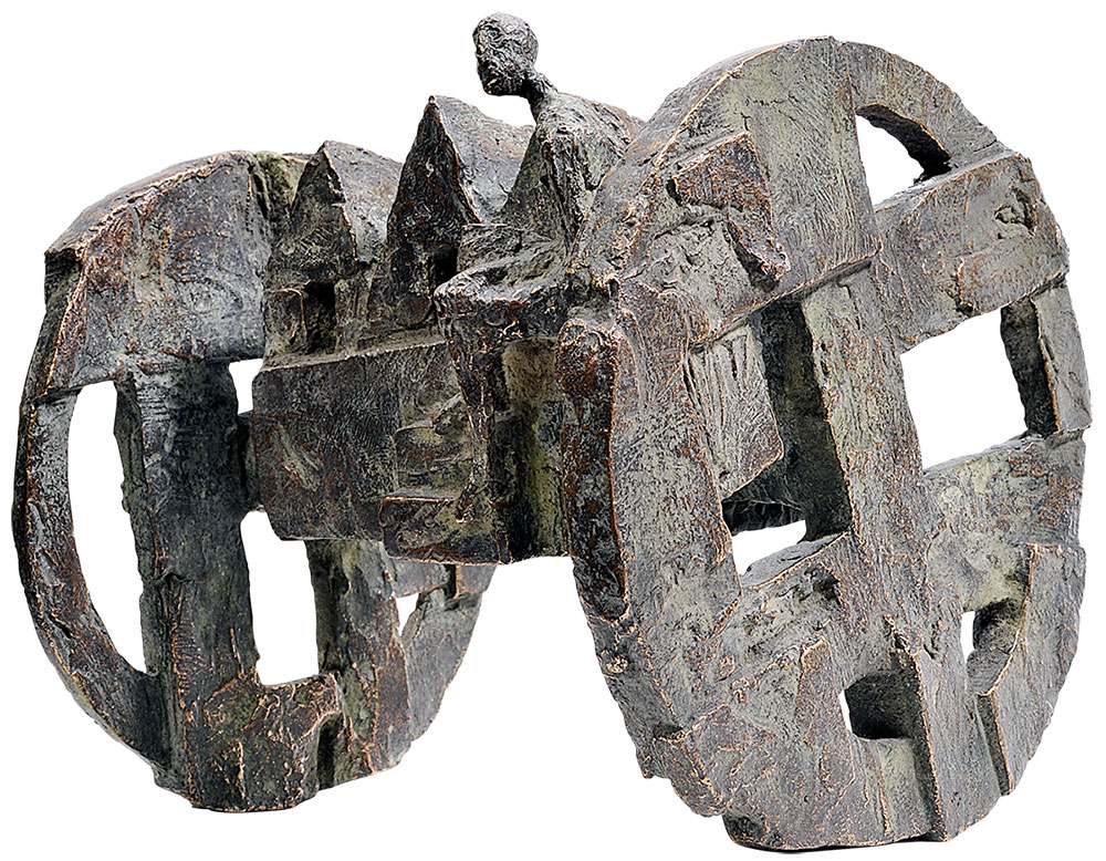 Produktinformationen "Michael Jastram: Skulptur '3-Häuser-Wagen' (2003), Bronze"