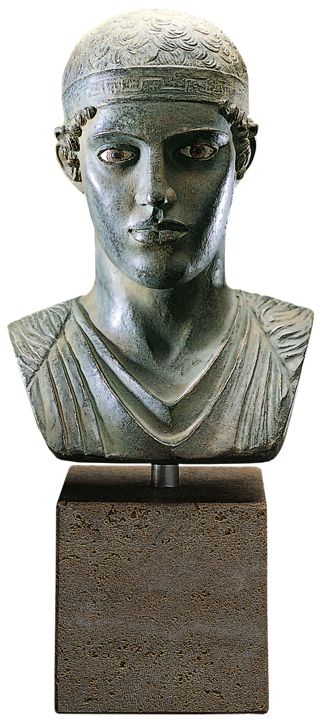 Productinformatie "Buste van de wagenmenner van Delphi' (reductie), handgeschilderd kunstgietwerk, sculptuur"