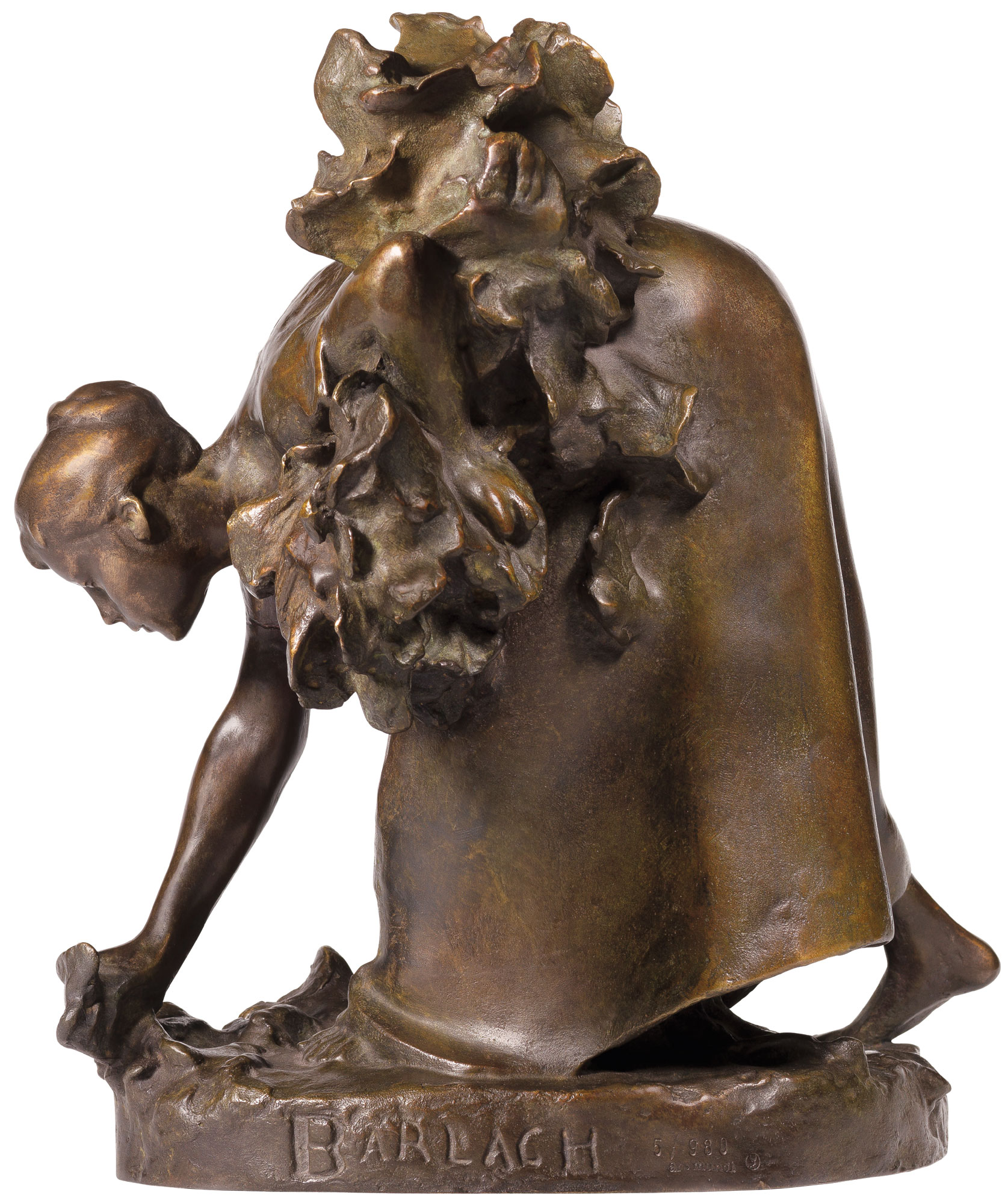Productinformatie "Ernst Barlach: sculptuur 'De kruidenplukker' (1894), reductie in brons"