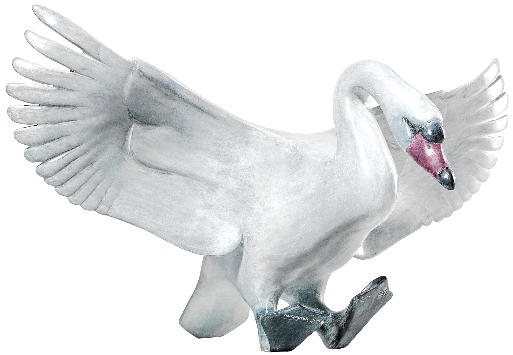 Productinformatie "Evert den Hartog: Sculptuur 'Landende zwaan' (versie zonder sokkel), wit/lichtgrijs brons"