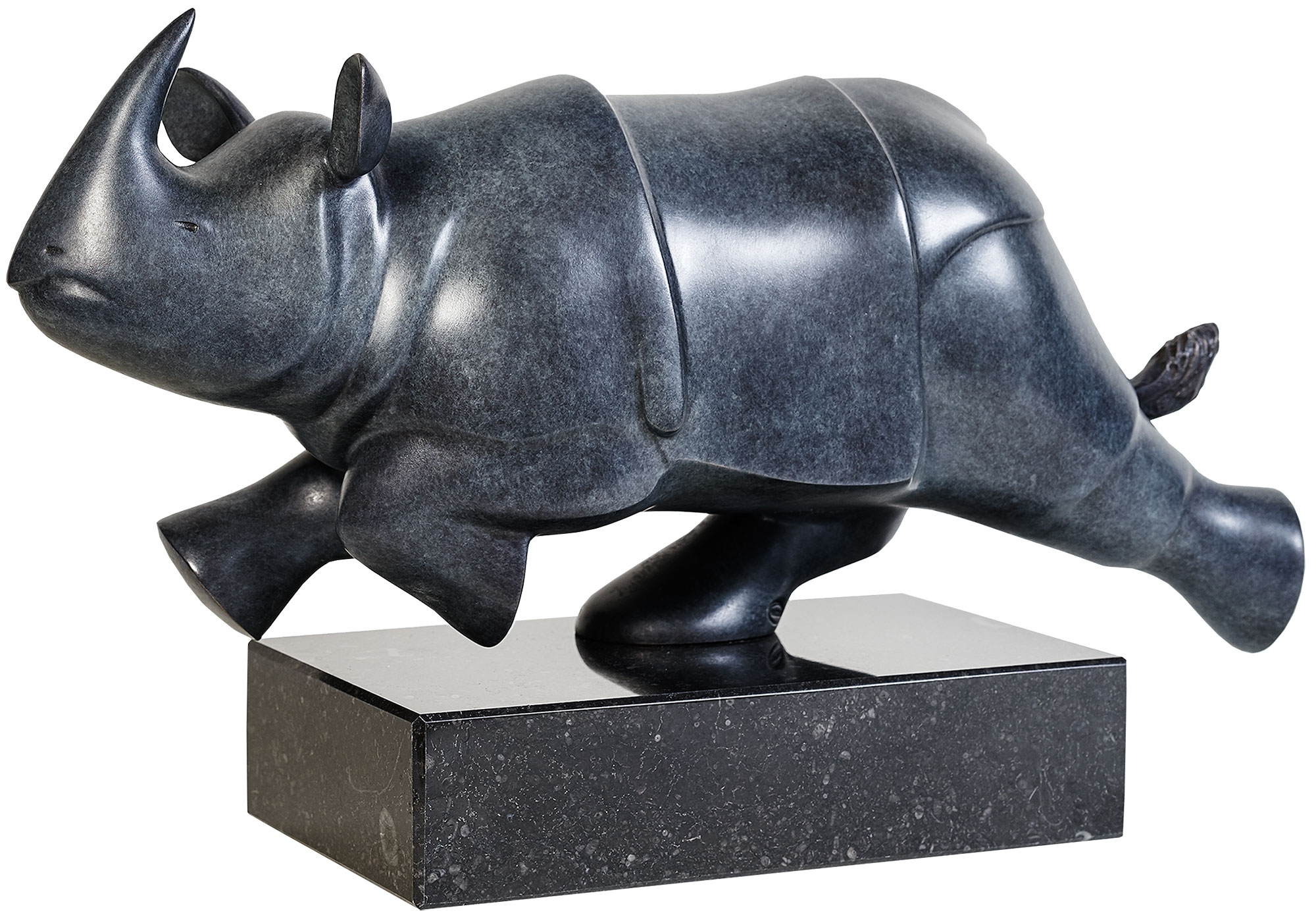 Productinformatie "Evert den Hartog: Sculptuur 'Rennende neushoorn', grijs/zwart brons"