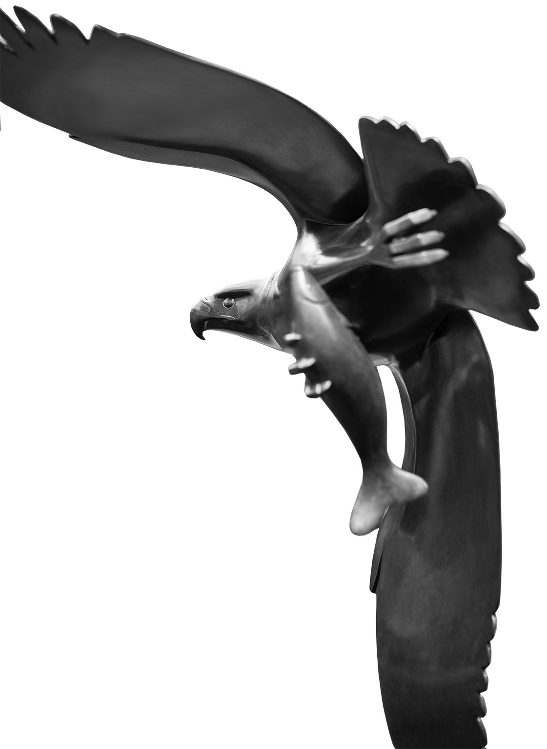 Productinformatie "Evert den Hartog: Sculptuur 'Roofvogel met vis nr. 2', bruin brons"