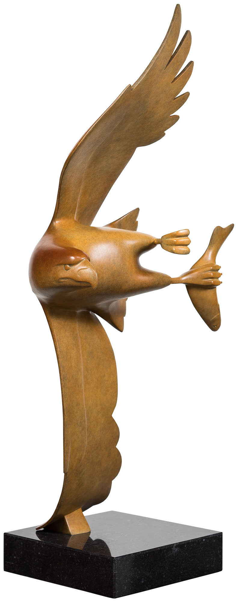Productinformatie "Evert den Hartog: Sculptuur 'Roofvogel met vis nr. 4', bruin brons"