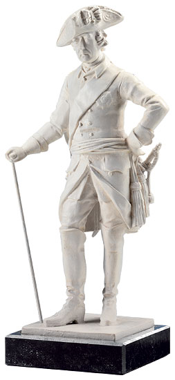 Met zijn marmeren beeld creëerde Schadow het beroemdste beeld van de Pruisische heerser. Het toont de grote heerser in een typische houding: soeverein en ongedwongen tegelijk, een grote koning. Origineel: Paleis Sanssouci, Potsdam, 19e eeuw, marmer. Bewerking in polymeer kunstmarmer. Hoogte 28 cm.