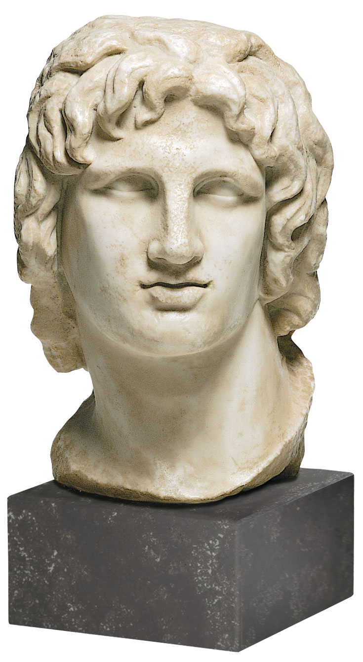 De wil tot macht staat geschreven op het sublieme voorhoofd van de titanische, krullendharige jongeling met zijn verre blik, open, begerige lippen en energieke kin. Alexander was pas 20 jaar oud toen hij zijn vader opvolgde. In de jaren die volgden, veroverde hij het grootste rijk dat ooit had bestaan. Origineel: British Museum Londen. Leochares. Circa 338 voor Christus, marmer. Polymeer ars mundi museum replica met de hand gegoten. Hoogte met antracietkleurige marmeren voet 49 cm.