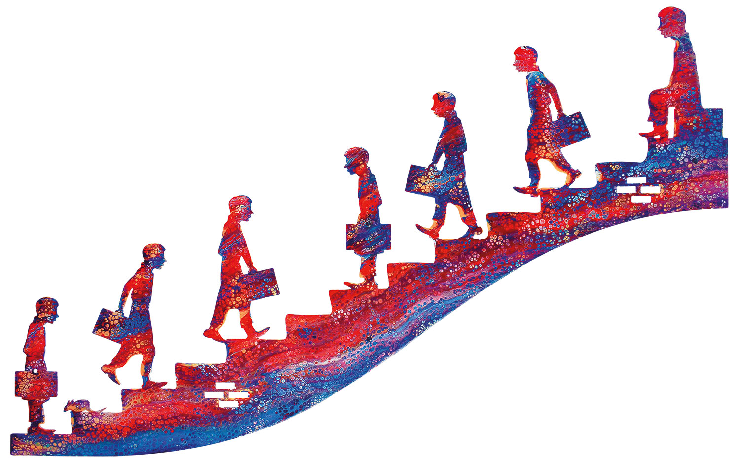 Productinformatie "Muursculptuur 'Op de trap', staal"