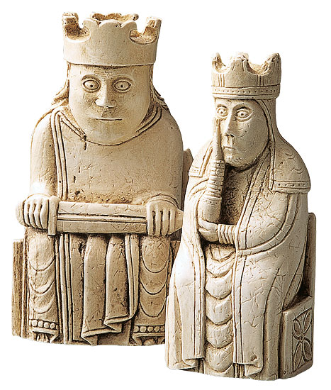 In 1831 werd op het strand van het eiland Lewis in Schotland de grootste collectie vroege schaakstukken ontdekt die in West-Europa is gevonden - sculpturen gesneden uit walrus tanden. Beroemd als de meest opmerkelijke oude schaakstukken ter wereld. Origineel: British Museum, Londen. Scandinavische griffioenstijl, 2e helft van de 12e eeuw. Polymeer ars mundi museum replica, met de hand gegoten, met antiek been effect. Net geen 10 cm hoog.