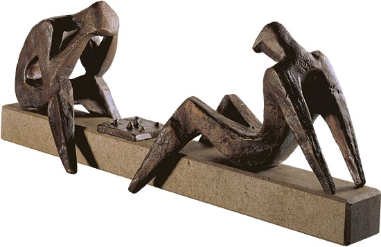 Productinformatie "Sepp Mastaller: sculptuur 'De schaakspelers', brons"
